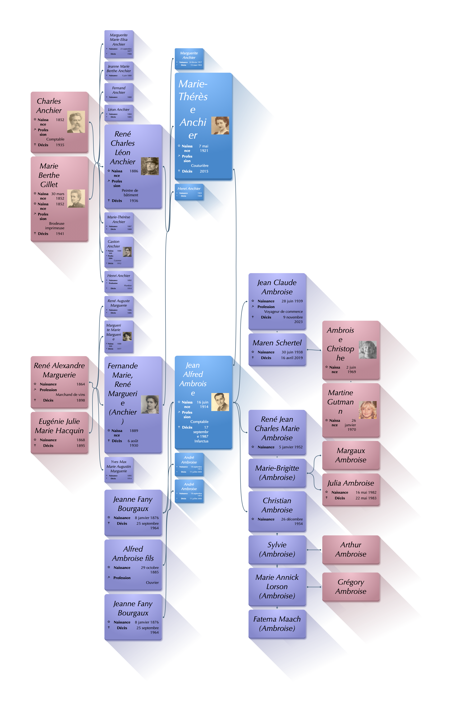 À la même époque, un drame frappe la famille : Marguerite, l’aînée née en 1916, épouse Jean Odinot mais meurt en couches à 41 ans, laissant trois garçons, dont l’un adopté surnommé « Dédé ». Leur père, incapable d’assumer seul, les confie d’abord à Marie-Thérèse et Jean, déjà accaparés par leurs propres enfants. Jean ne veut pas garder les enfants de sa belle soeur et ces derniers sont placés aux services sociaux. Dédé, que Martine et moi avons rencontré en Australie, évoquait encore la peur qu’ils avaient de Jean et se souvenait de Jean-Claude Ambroise comme d’un frère protecteur. Il nous a transmis cette histoire que Marie-Thérèse et Jean n’avaient jamais racontée.